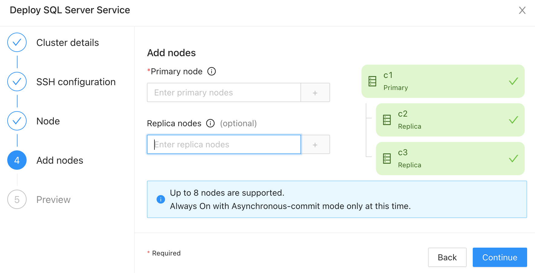 - Only asynchronous replication mode is supported for AlwaysOn.