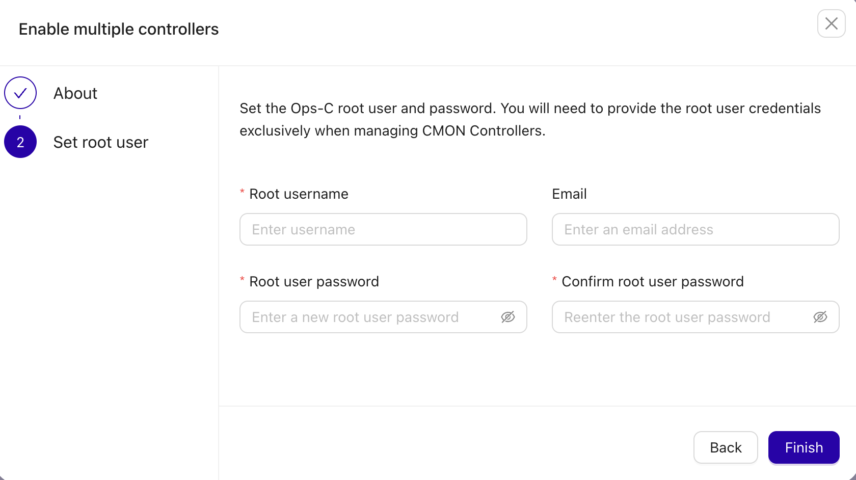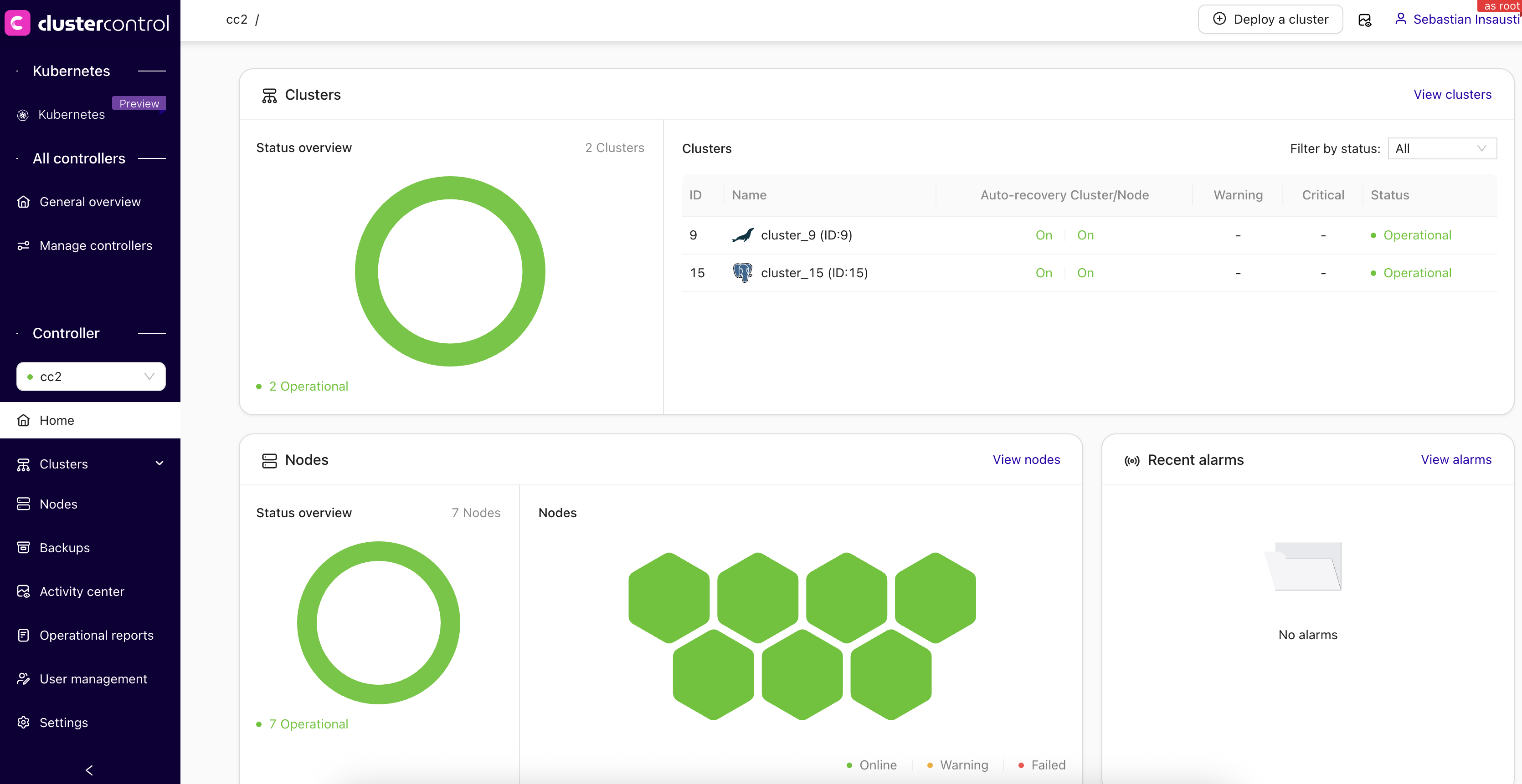 When you enable ClusterControl Ops-C, it will ask you to create a root user and password. This root user is used only for managing CMON Controllers and serves as an extra layer of security.